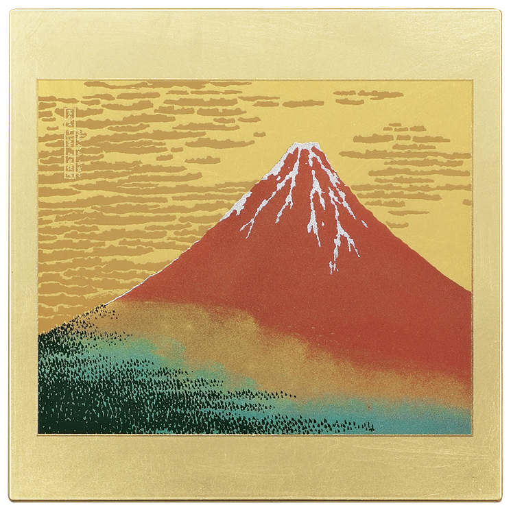 山中漆器 蒔絵マウスパッド 赤富士 金