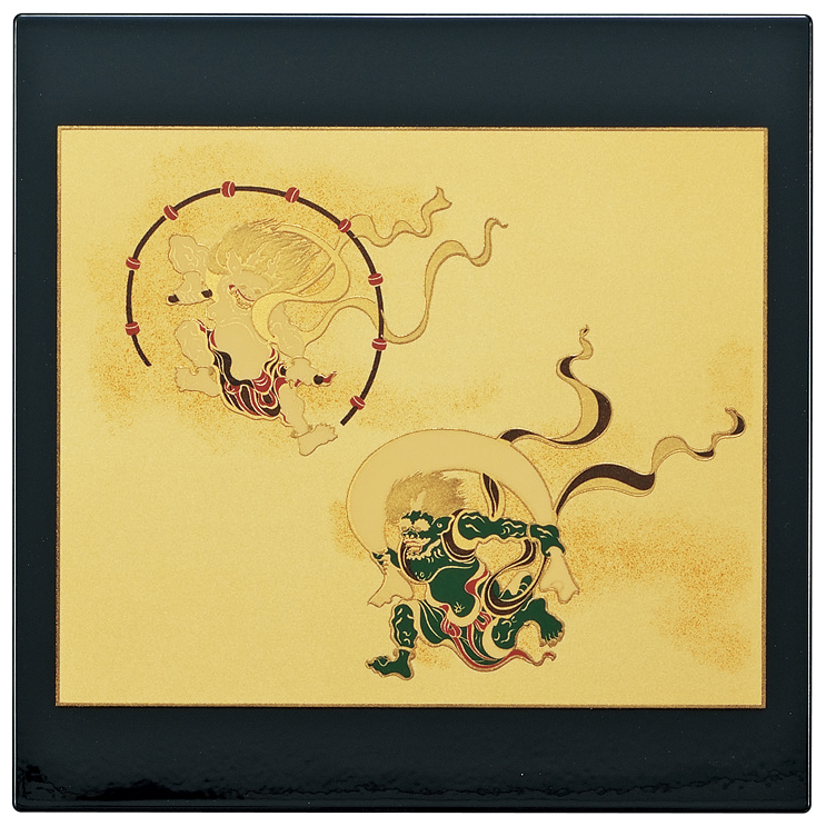 山中漆器 パネルマット スタンド付 風神雷神